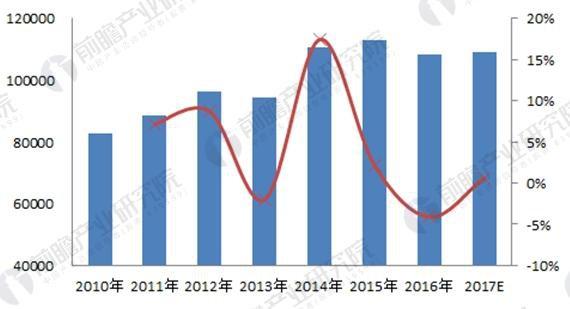 图表 4:2010-2017 年中国稀土永磁材料生产规模(单位:吨,%)